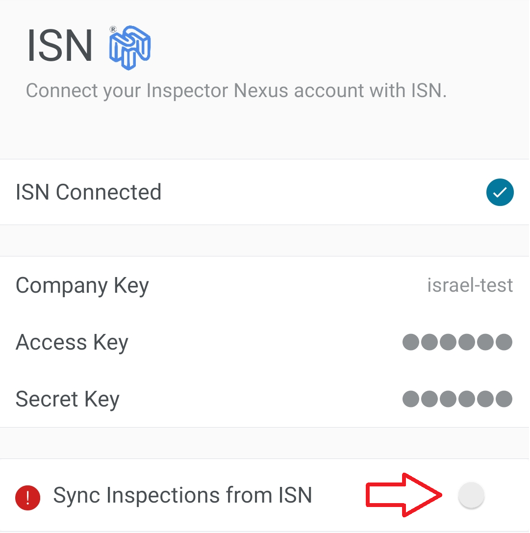 Make sure to toggle the "Sync Inspections from ISN" button on: