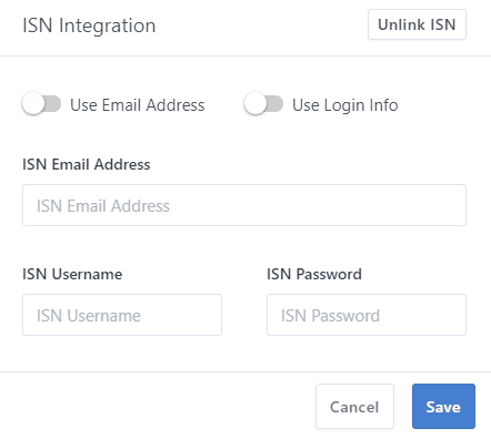 The ISN Integration can be turned on from the Mobile Appor from the Web Dashboard. You'll need your ISNusername and password, or your ISNaccess keys.