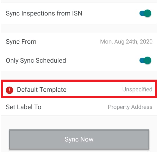 You'll see a warning next to the "Default Template" option. You won't be able to sync data from ISN unless we clear out this warning. Tap on it: