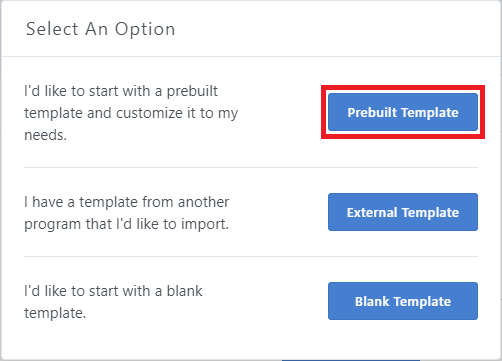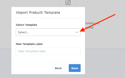At the next screen, open the list of prebuilt templates by clicking the dropdown icon.