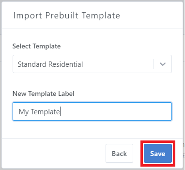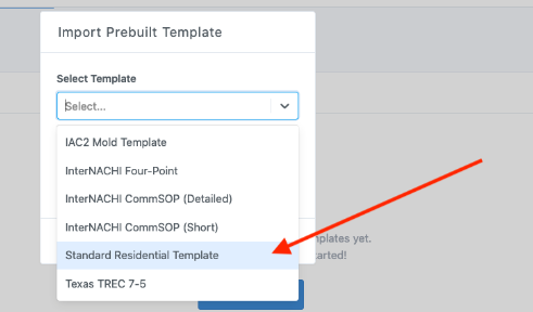 Select your desired template to import. We recommend starting with the Standard Residential Template.