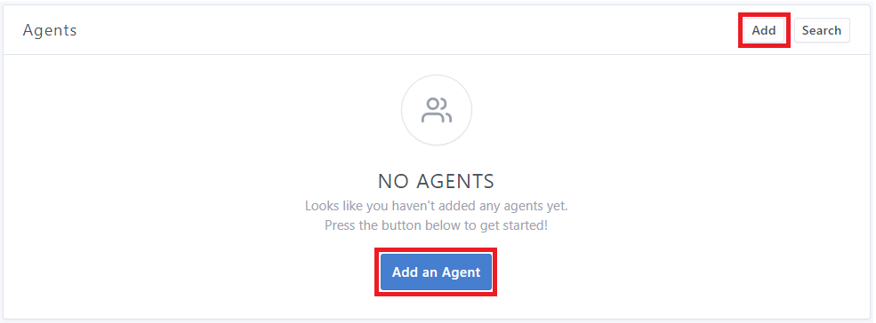 If you have not added agents yet, you may also see the "Add an Agent" blue button.