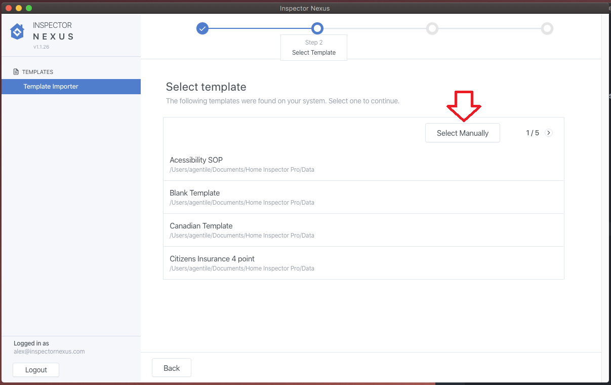 Next, select your template from the list. If you do not see your template in the list, find your template on your computer by clicking "Select Manually".