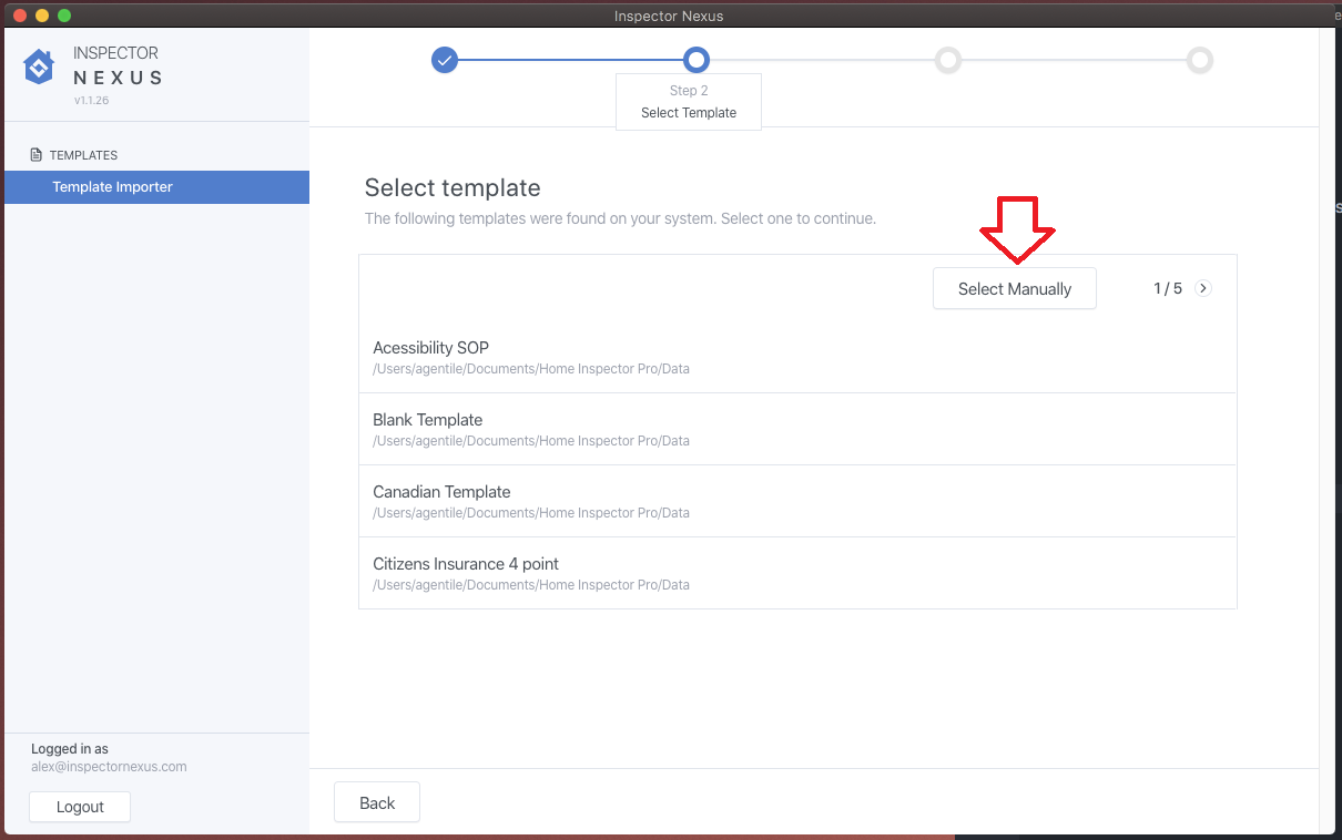 Next, select your template from the list. If you do not see your template in the list, find your template on your computer by clicking "Select Manually".
