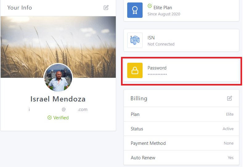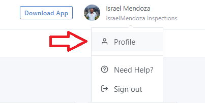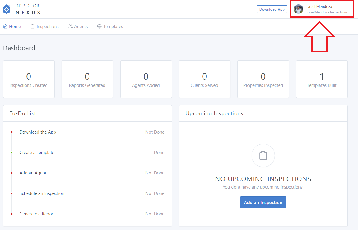From the Inspector Nexus dashboard, click on your name in the upper right corner: