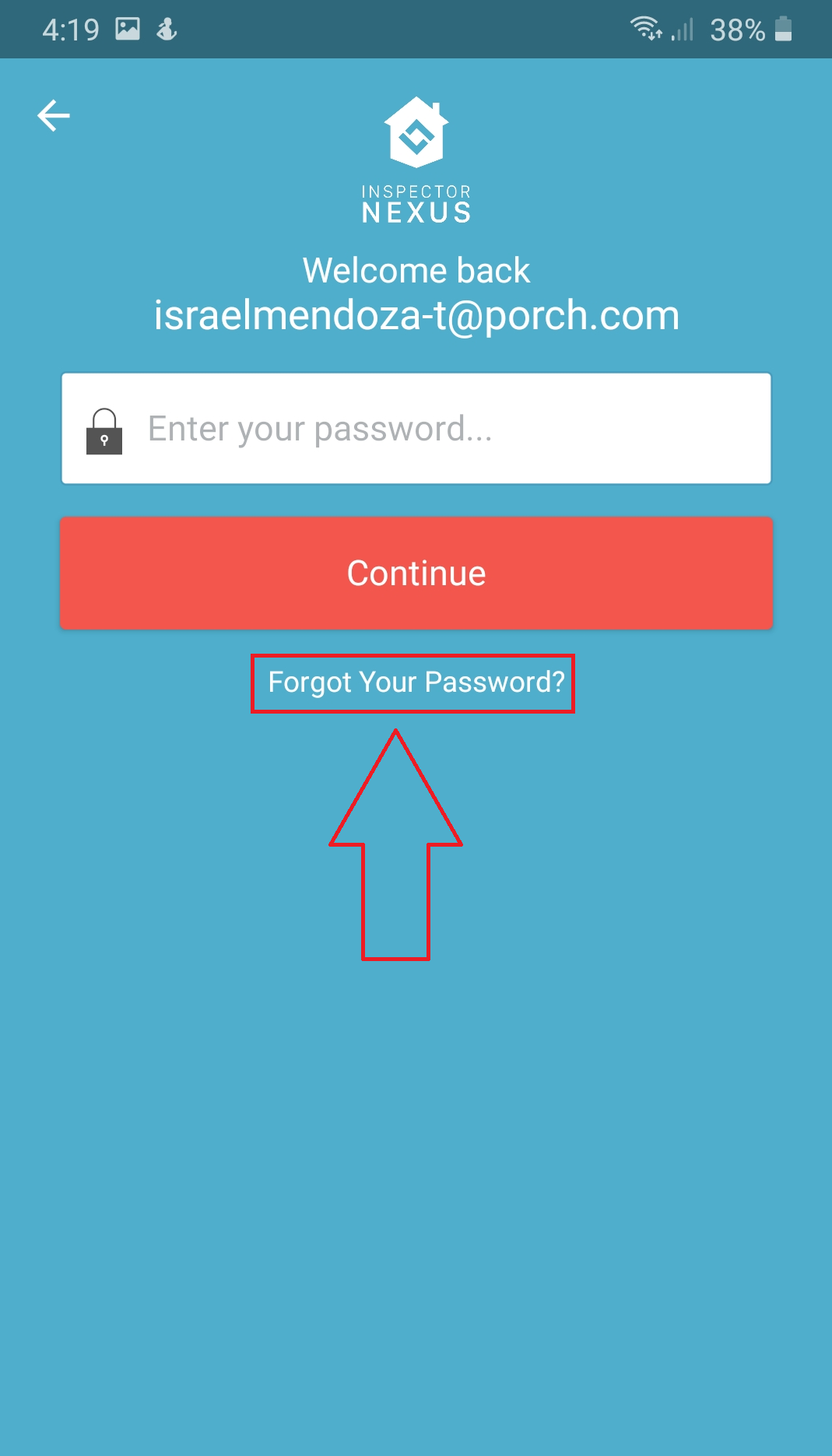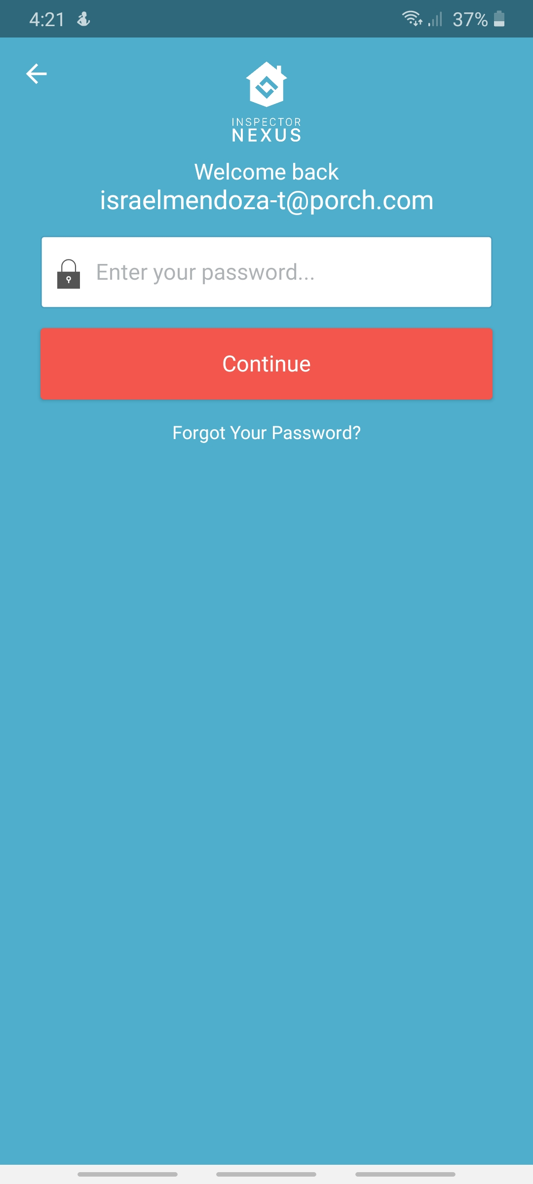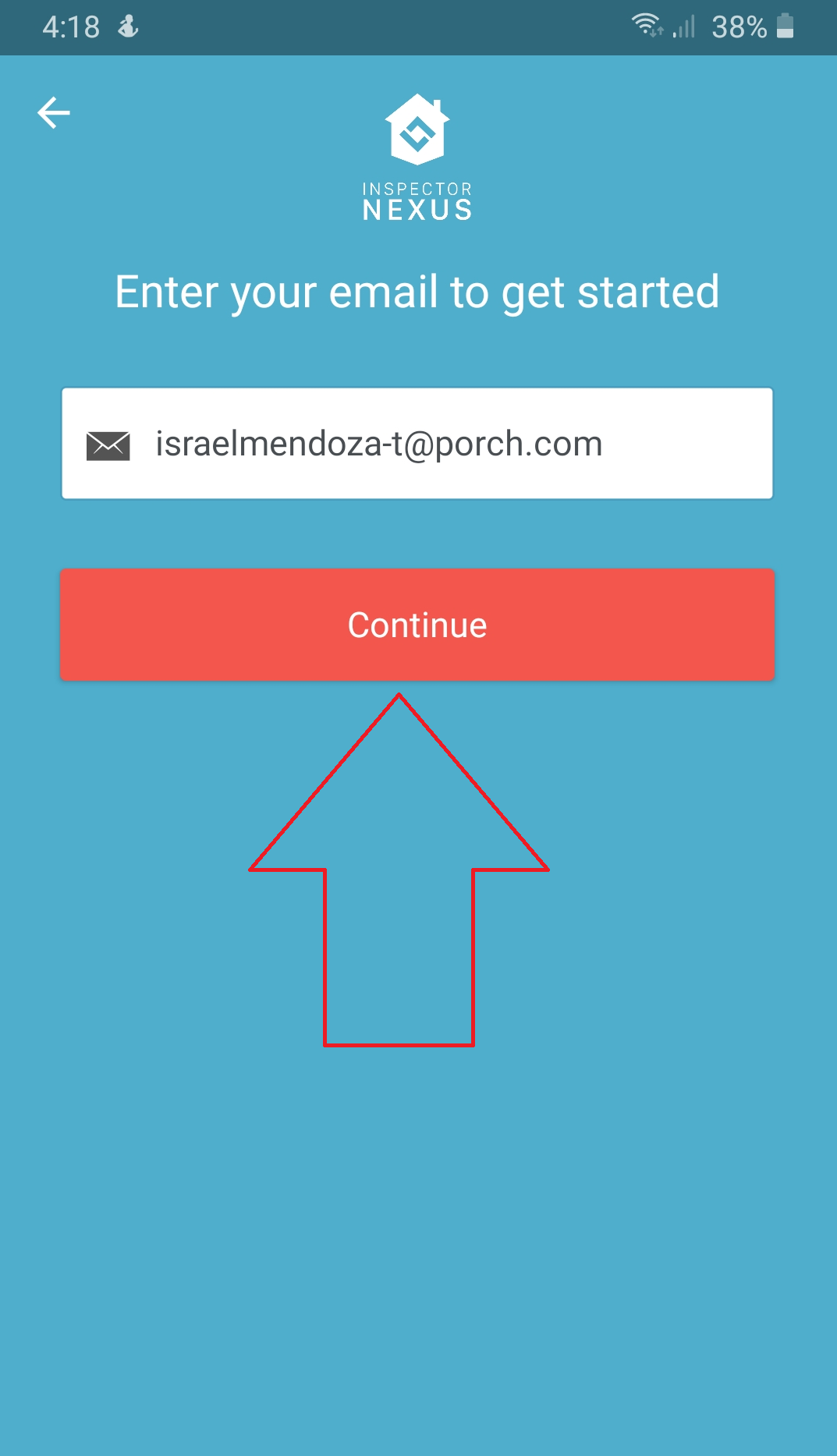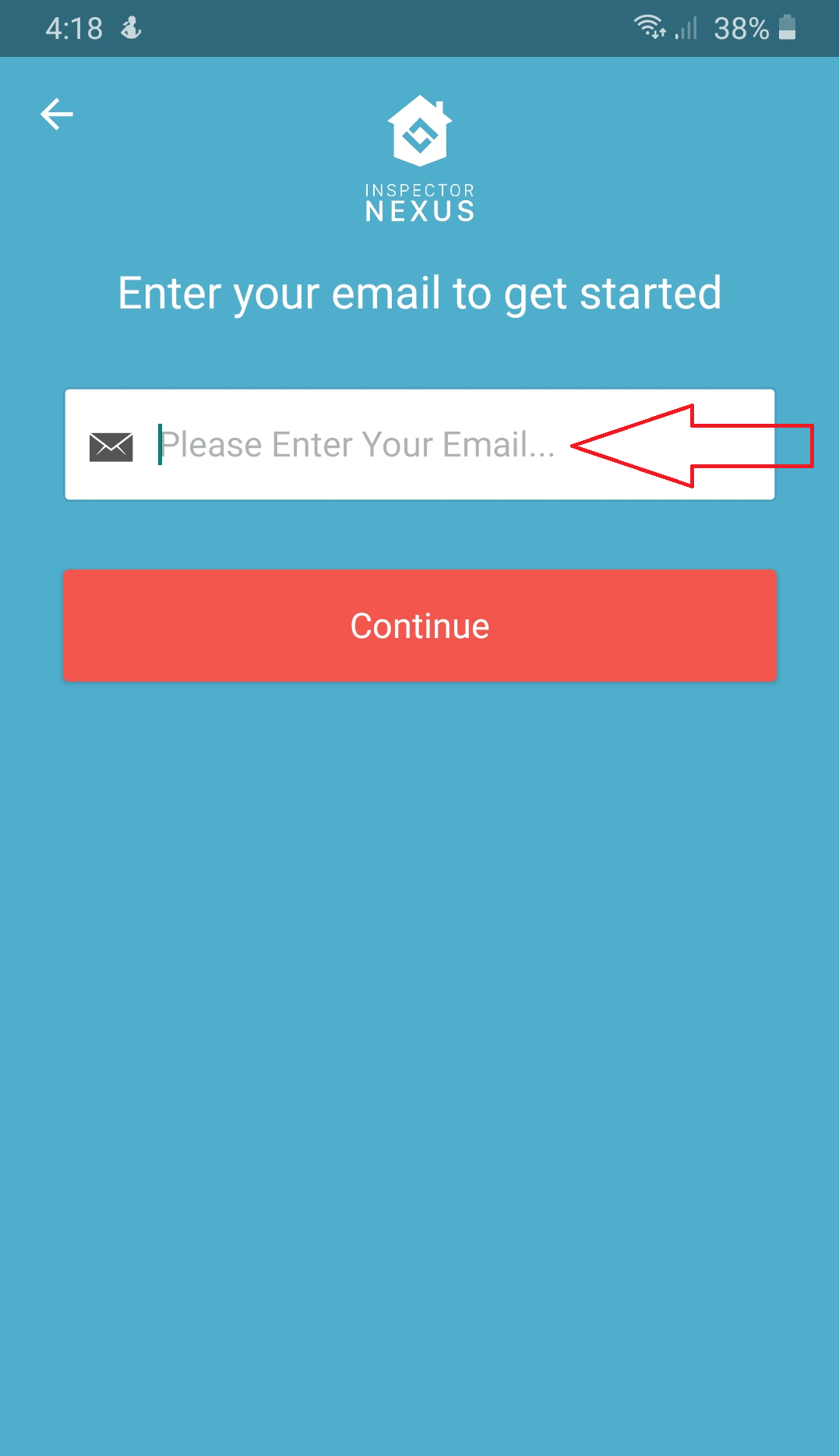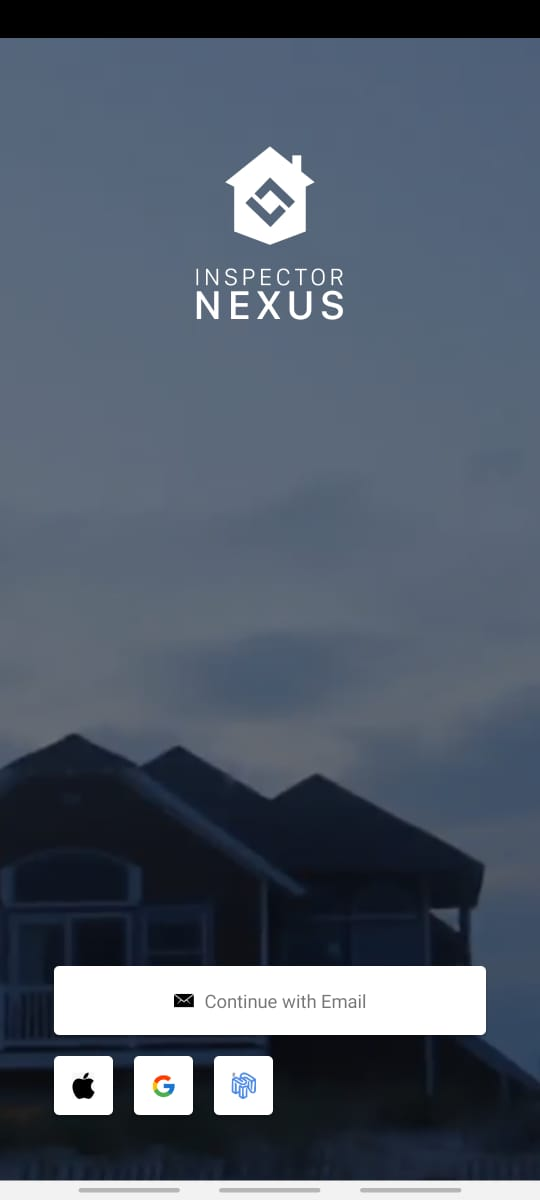 Launch the Inspector Nexus Mobile app. Select the "Continue with Email" option.