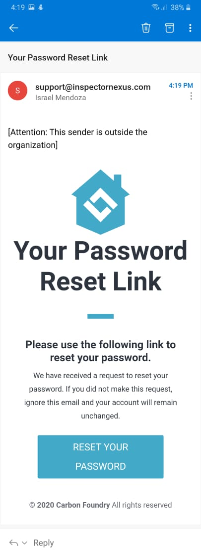 In your inbox, you will find an email like this, sent by support@inspectornexus.com