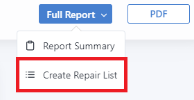 A Repair List is a list of items from the published Inspection Report that are specifically flagged as needing attention. These items may contain comments or credit requests.