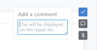 Note that these comments will appear in the Repair List once it's printed: