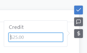You can either add a comment using the speech bubble icon, or the credit using the dollar sign icon: