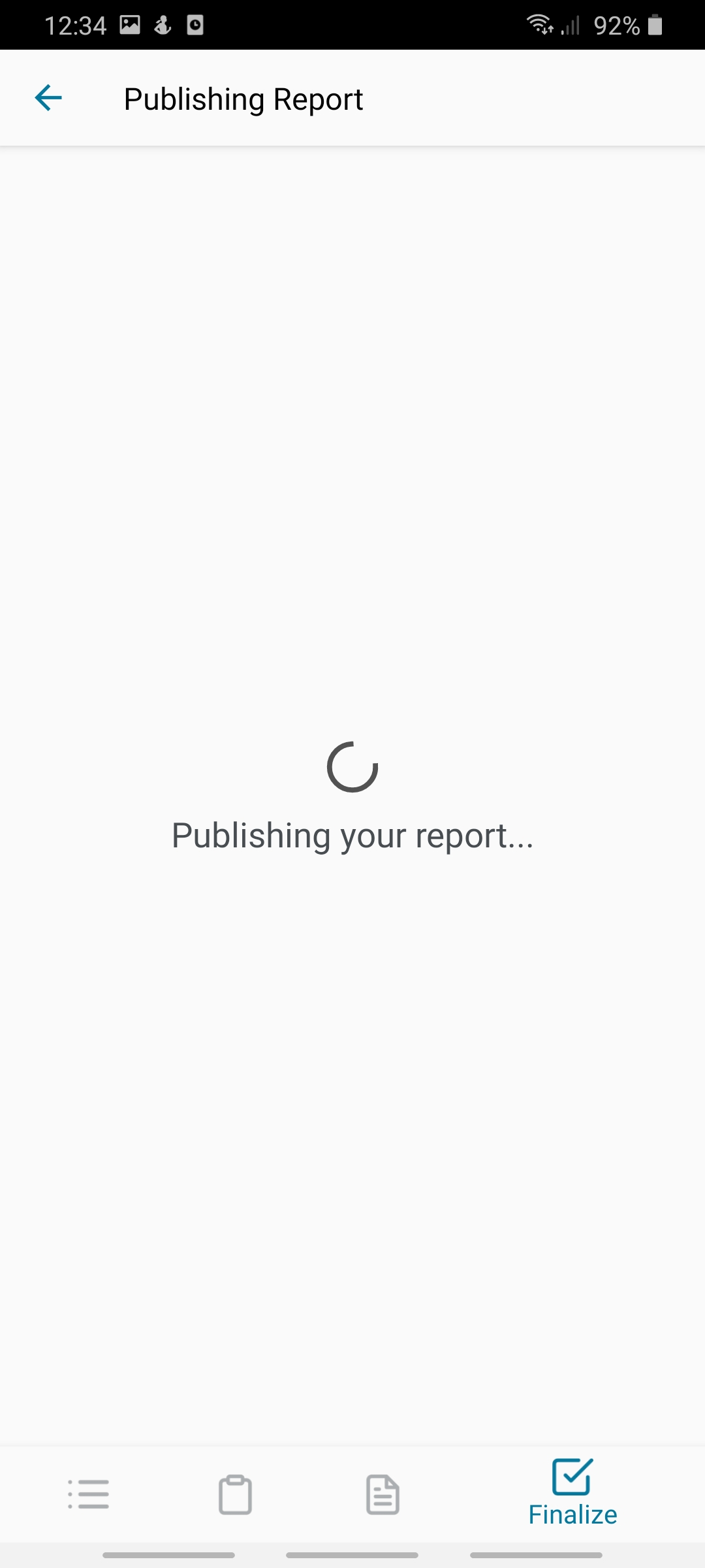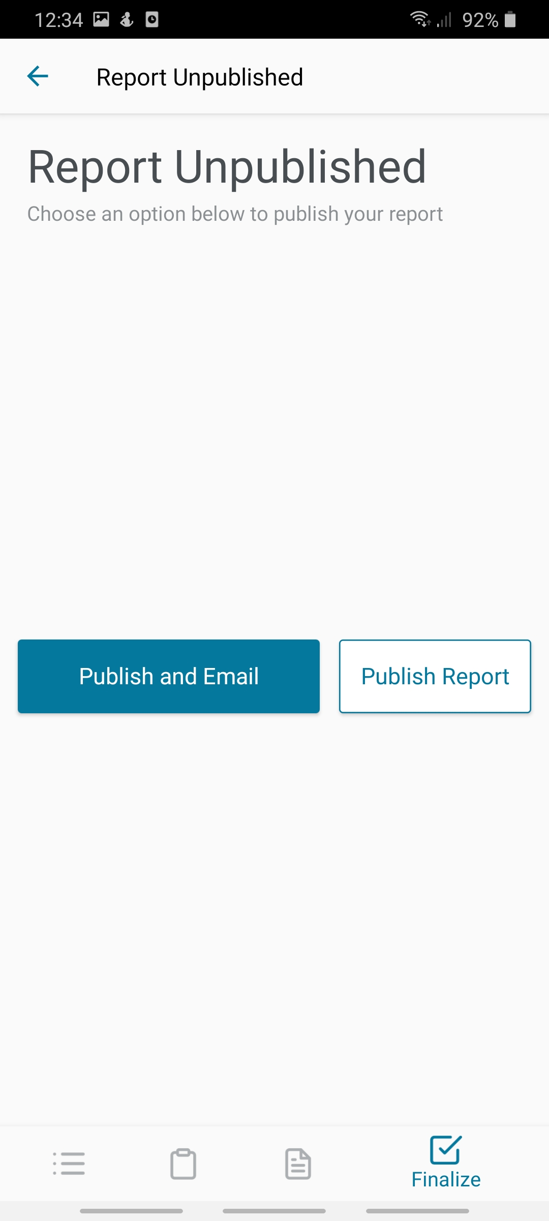 "Publish Report" will not email the report, but you will have the opportunity to see it immediately using the device's default browser app. Don't worry! You can still email the report afterward!