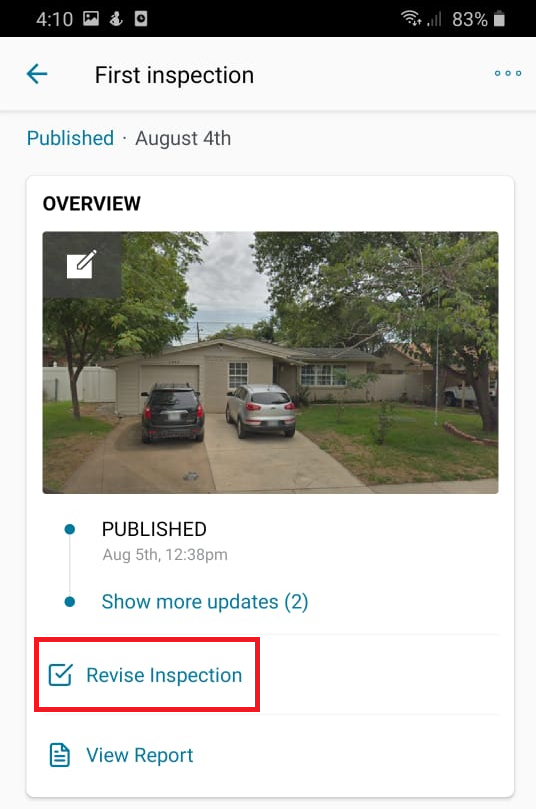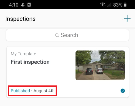 In the Inspector Nexus Mobile application, open the inspection you'd like to modify. You will notice the inspection is marked as "Published" and will display the date the publication took place:
