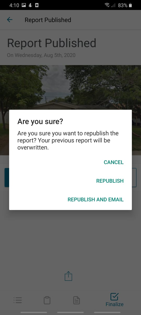 "Republish and Email" will give you the option to email the report out to the client, agent, yourself, or anyone who needs it.