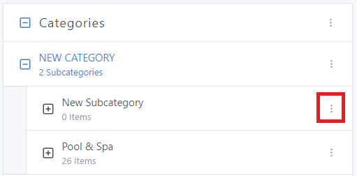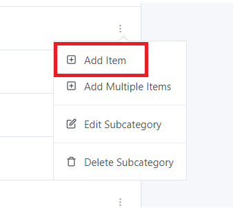 Click on the three dots next to the Subcategory you want to add a new Item to: