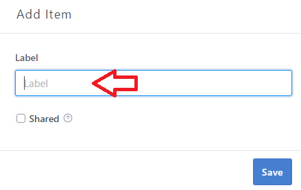Enter the name of your new Item in the "Label" field: