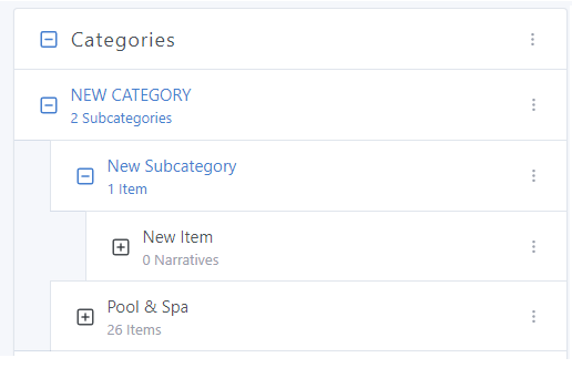 The new Item will now appear under the Subcategory:
