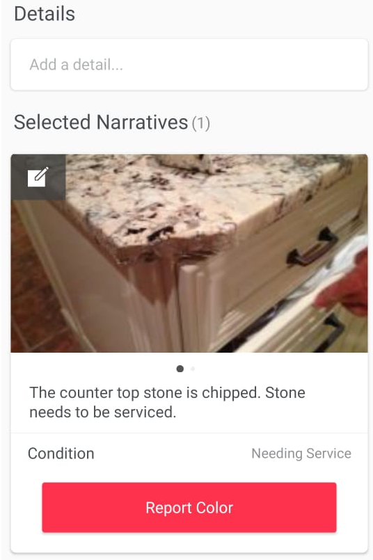 Narratives can have photos applied to visually illustrate a point or area of concern.