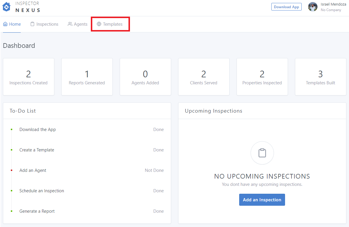 In the Inspector Nexus Web app, click on the "Templates" tab: