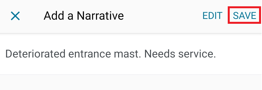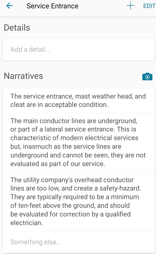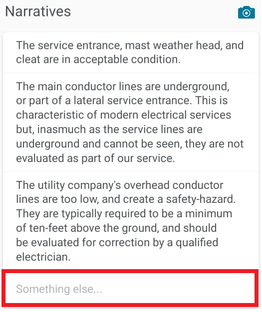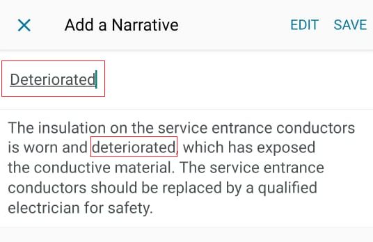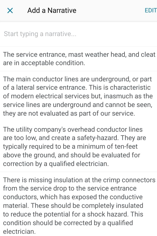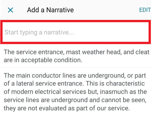 You can create your own narratives during an inspection. You can also tap on one of the available narratives to add them to the final report.
