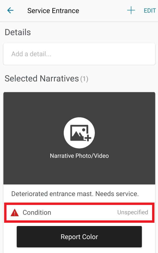 Once you choose a condition, you can also add media files to document the narrative. Just tap on "Narrative Photo/Video".