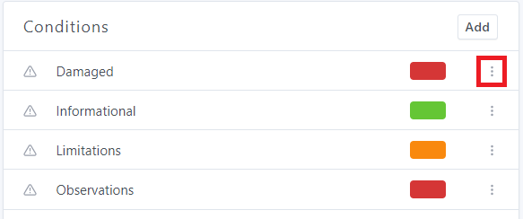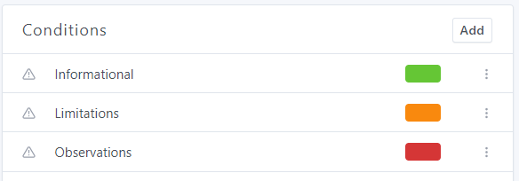 Conditions are used to group together similar types of narratives in your report. This can be especially useful for a report summary, as you can group all narratives with the "needing service" condition together, for example.
