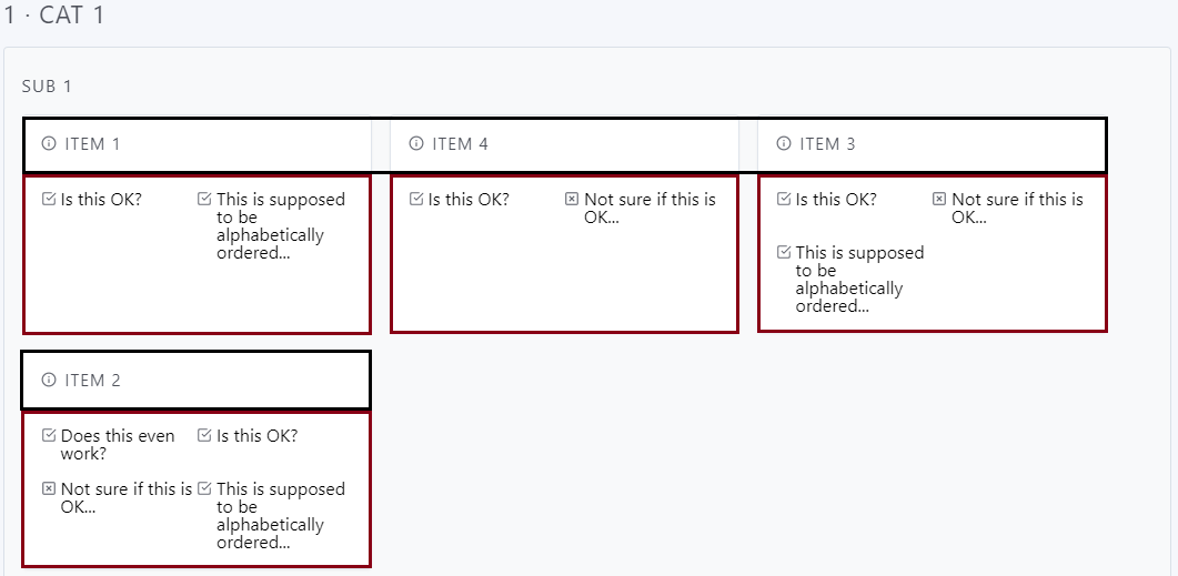 Notice the order of the items under Cat 1 --> Sub 1 (Item 1, Item 4, Item 3, Item 2).