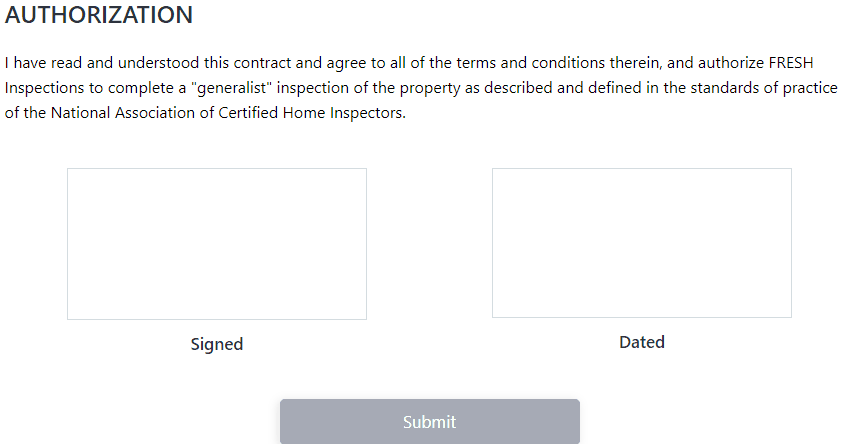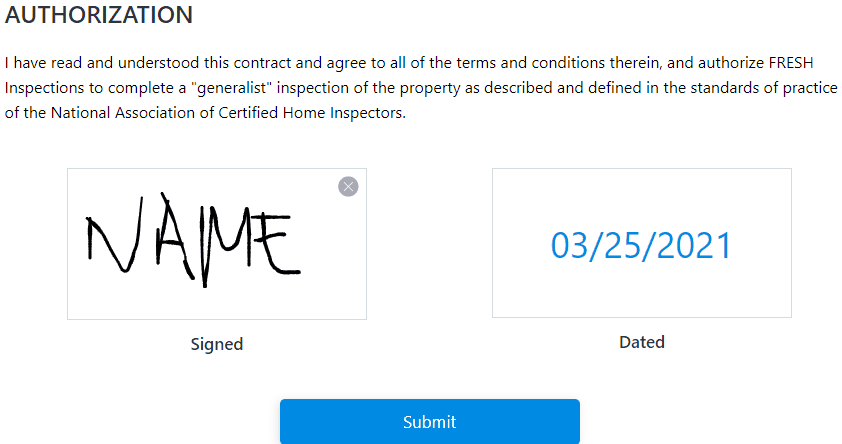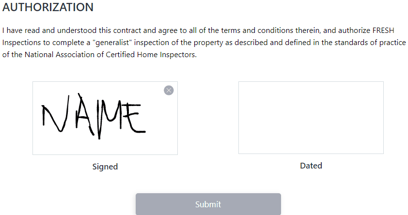 When ready to sign, grab your mouse, stylus pen, or just finger (depending on the type of device you have), and use it to draw your signature into the Signed box (notice how you can clear your signature by clicking on the X at the top right corner of the box):
