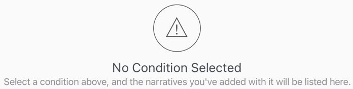 Once you tap on one of the conditions, you'll see a preview of all the narratives within that condition will look like in the final report summary: